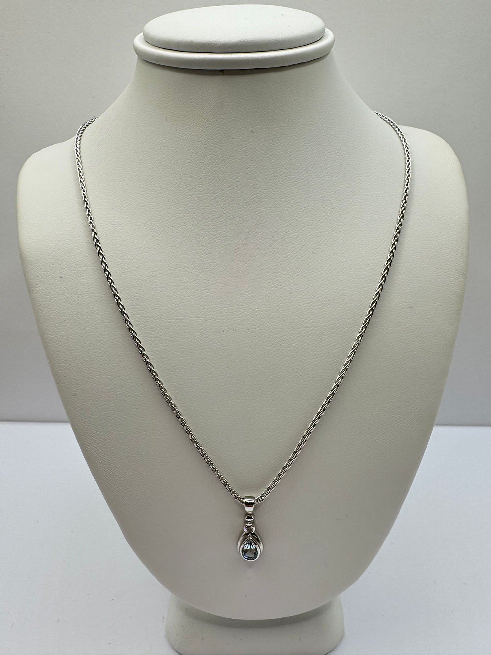 9ct White Gold Diamond and Aqua Marine Pear Drop Earrings, Chain & Pendant Set
