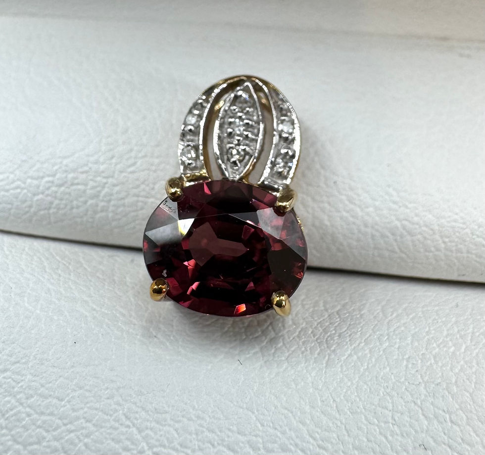 9ct Gold Oval Red Spinel & Diamond Pendant