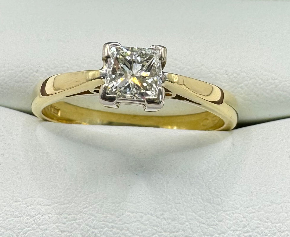 18ct Gold 0.50ct Princess Cut Diamond Ring - Size N 1/2