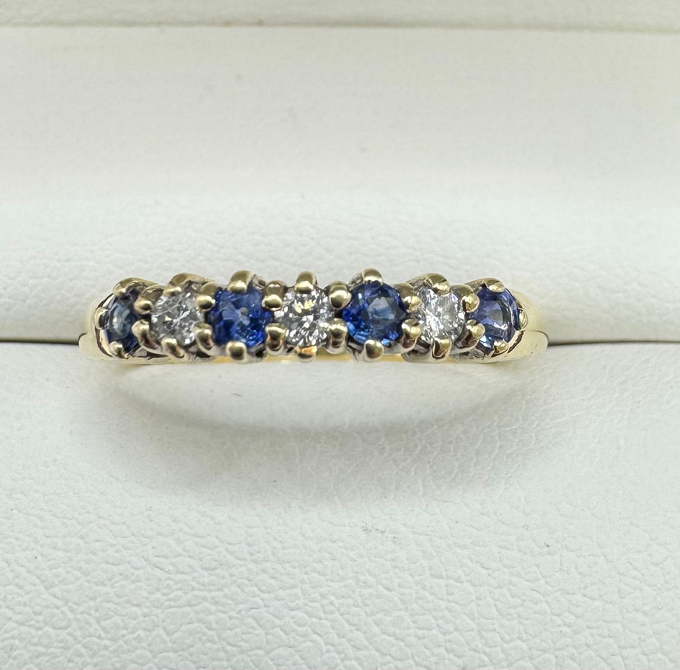 9ct Gold Diamond & Sapphire Half Eternity Ring - Size L 1/2
